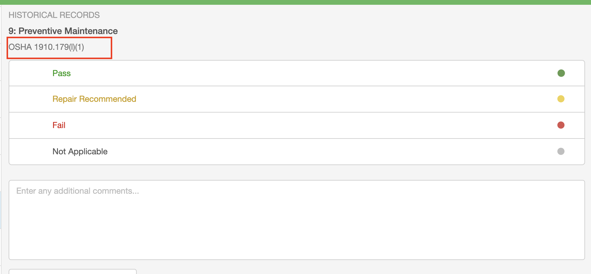 - List Name: The name of the answer list (not visible to the user when filling out the form). A list that contained Pass, Fail, and Not Applicable as the available answers may have a list name of "Pass / Fail / NA".