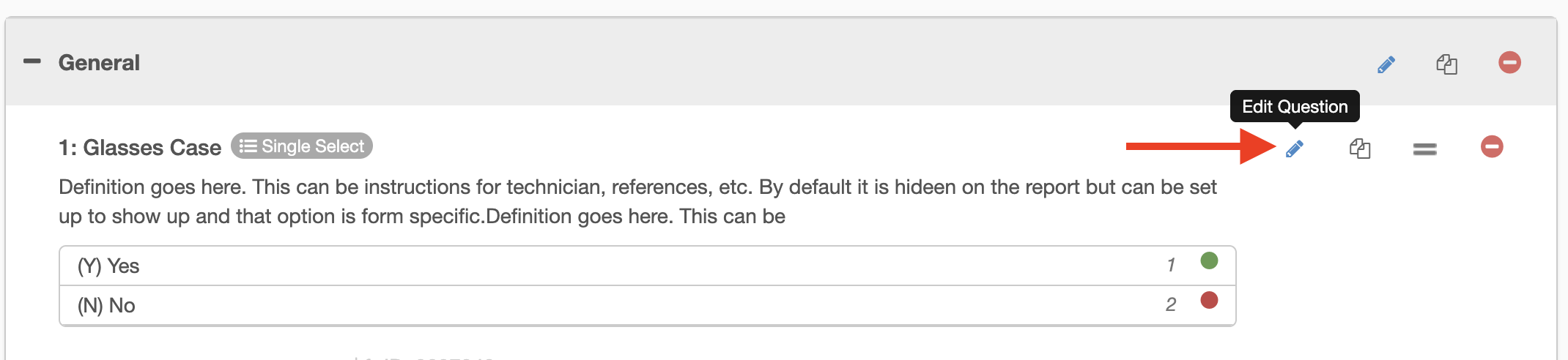 - Click "Edit Question" on the question with the list you'd like to make a change to (the blue pencil icon).
