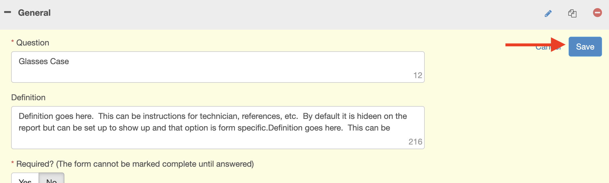 - Score: For more complicated answers, you may want to have a scoring system. For example, an answer of "Yes" may give the question 5 points, but an answer of "No" may give 0 points.