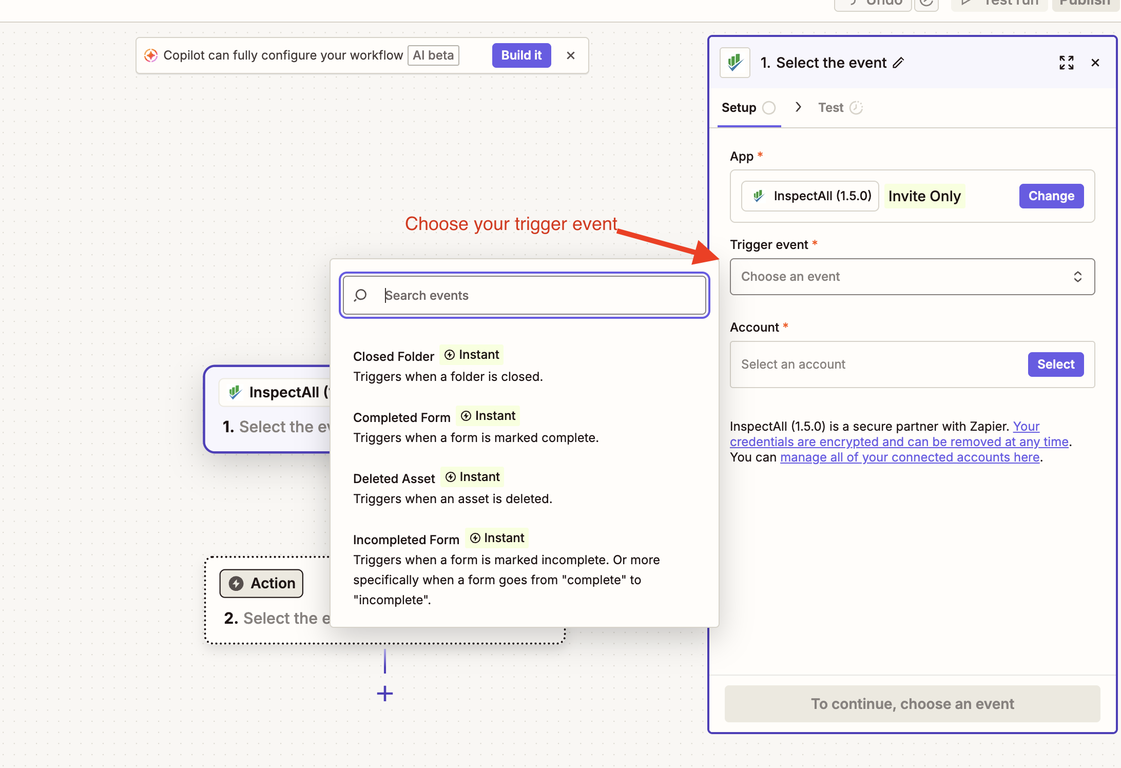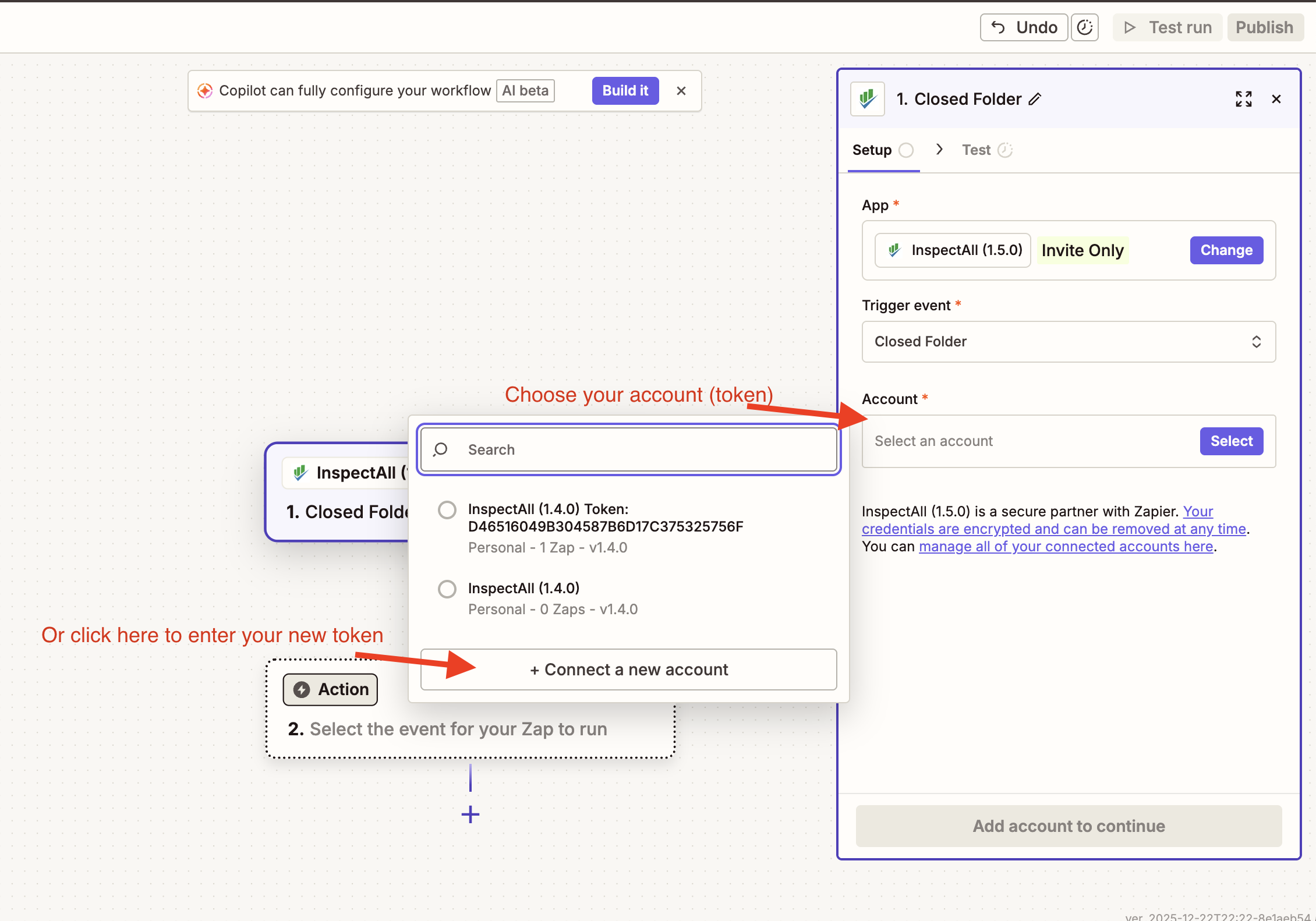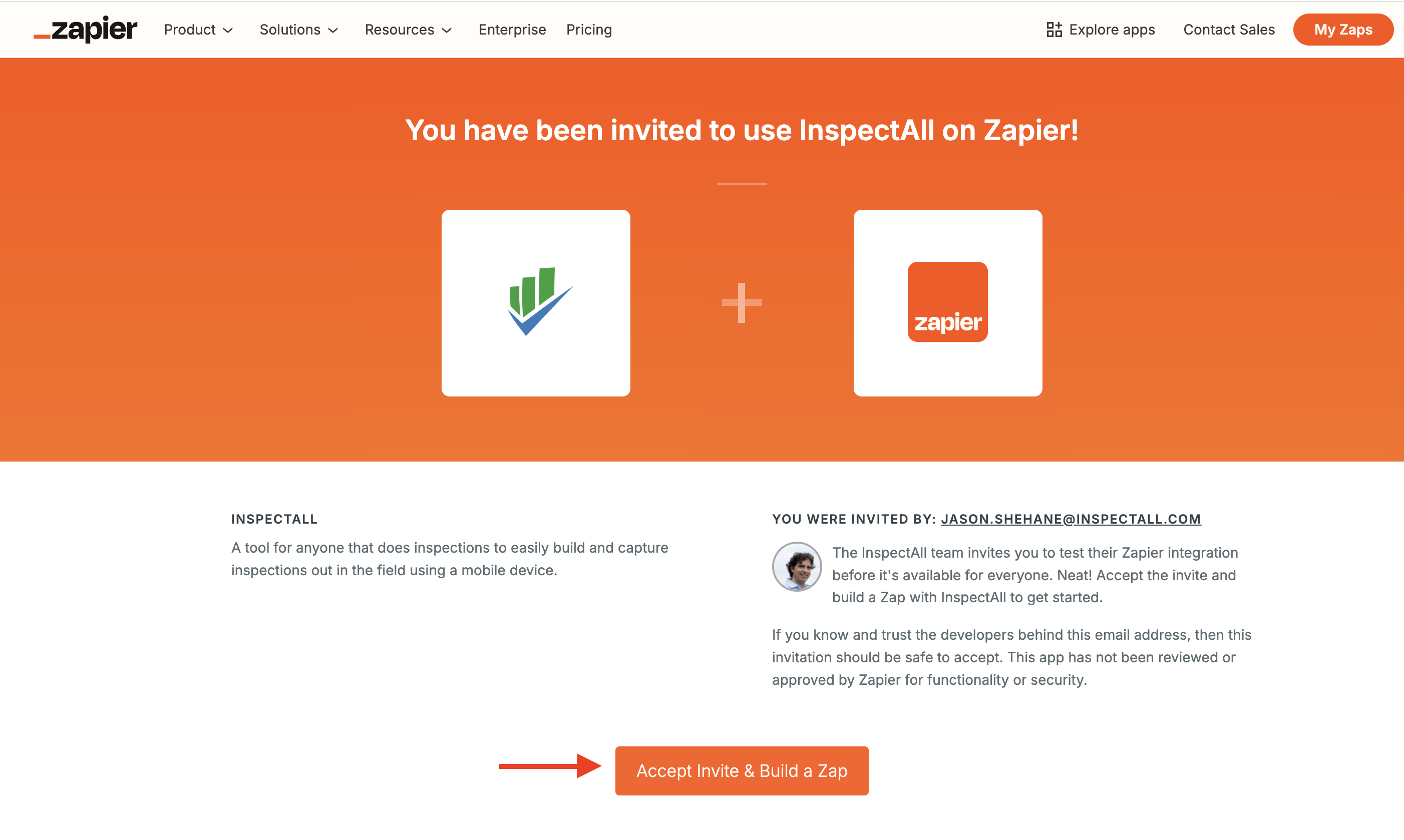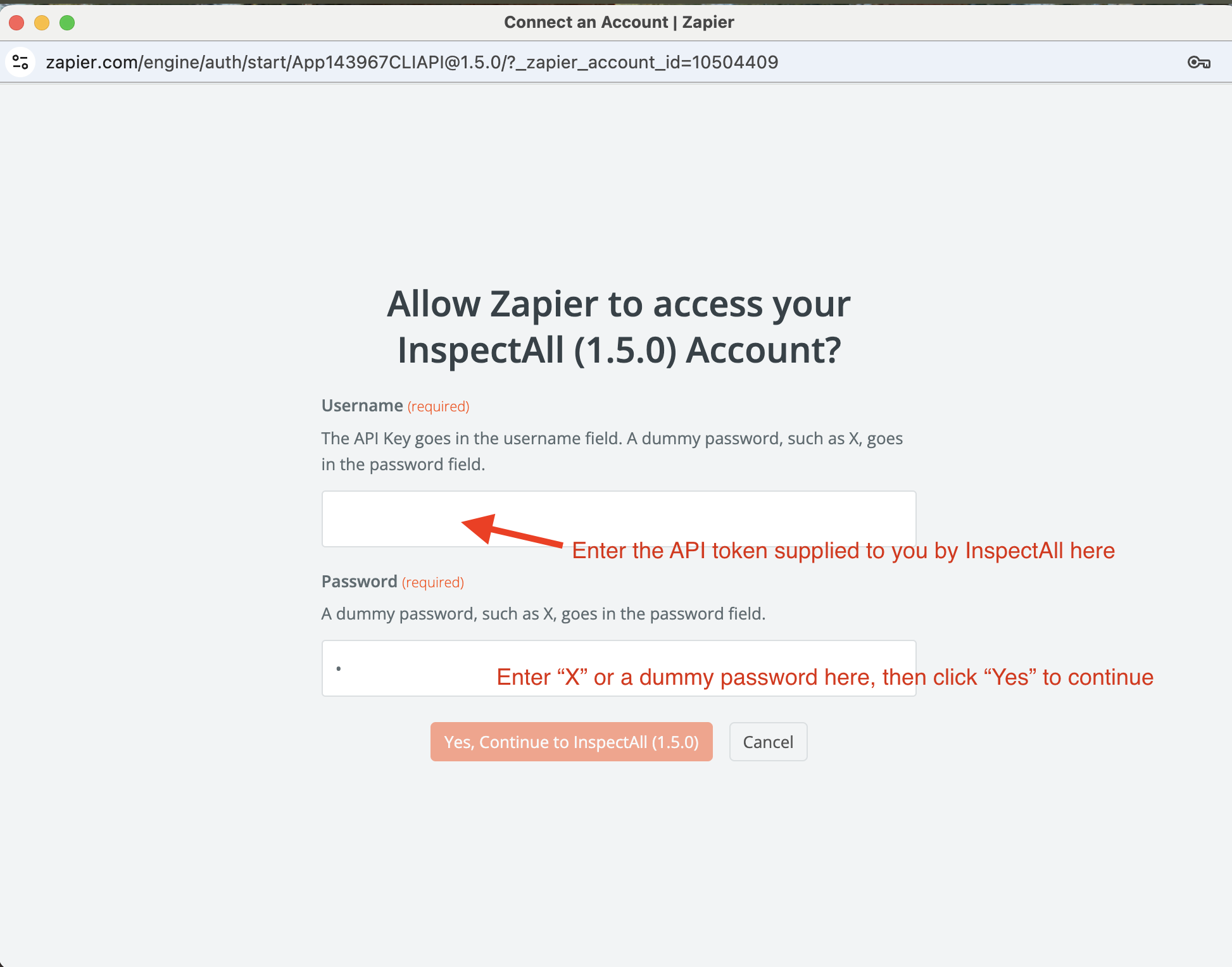 Once you've created an account with Zapier, contact support@inspectall.com to request your API token. You will also want to contact the software you are integrating with to request a token from them.