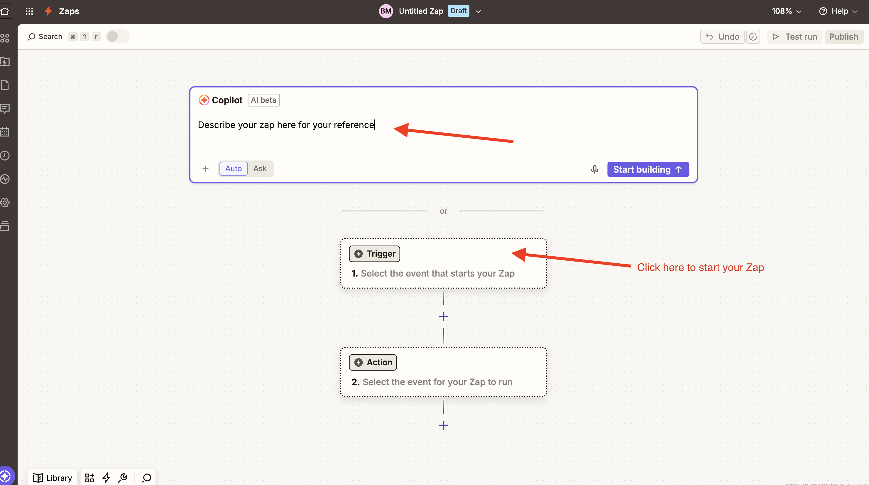 Depending on the type of Zap you are creating, you will be asked a series of questions to specify the action. Follow the prompts to create your Zap.