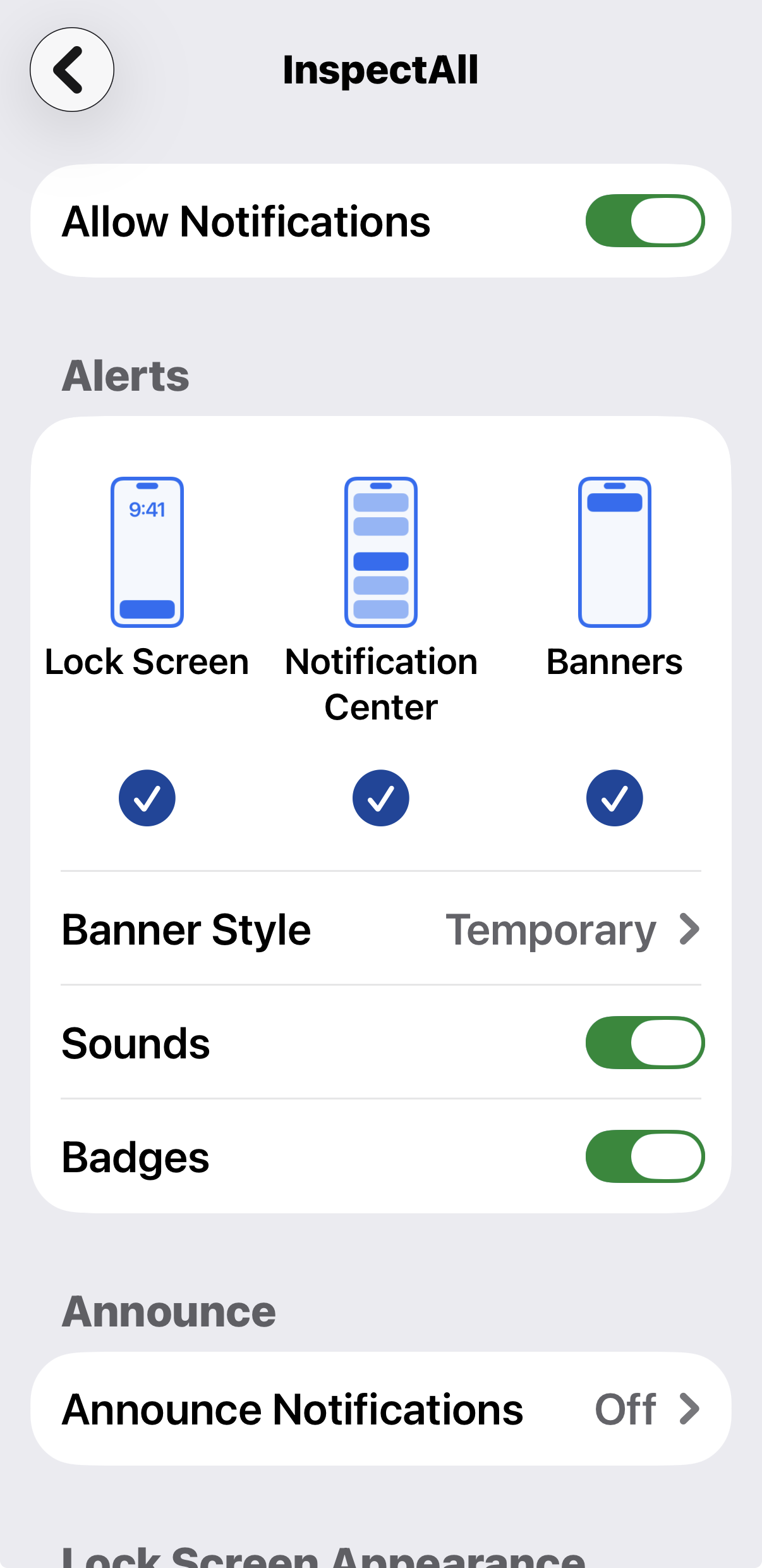 - Go to your device settings and search "InspectAll".