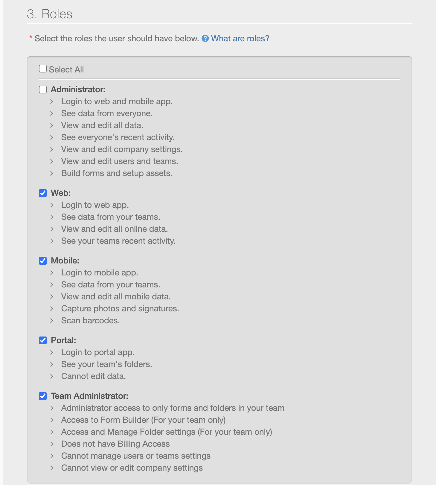 To add the Team Admin user type as an option, have an Admin user from your account email us at support@inspectall.com. Once the feature is enabled, you will see "Team Admin" as an additional option in the User Set Up menu.
